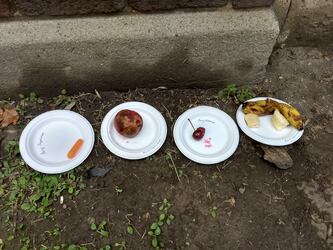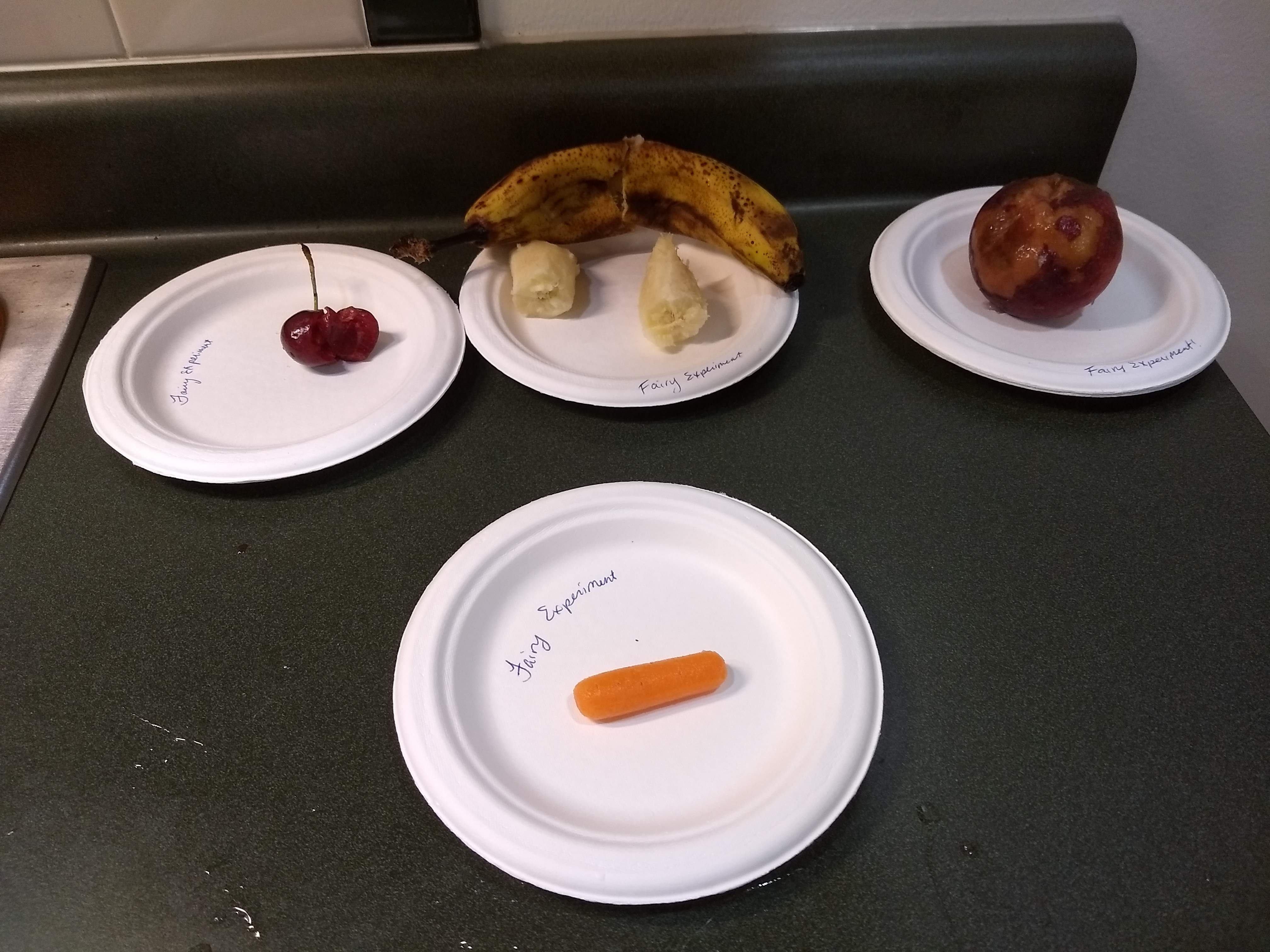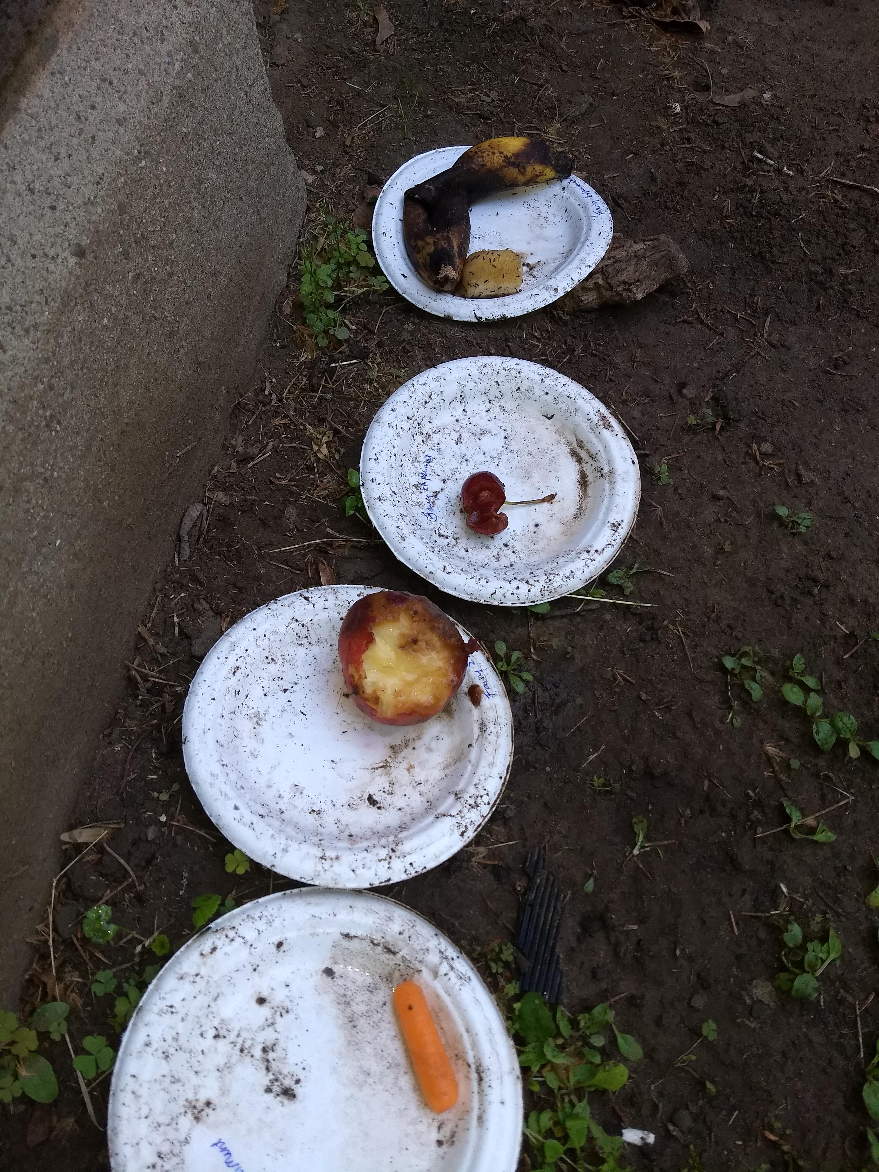 You should have found bugs swarming the plates of fruit. Maybe one of the plates had more or fewer bugs than the others.