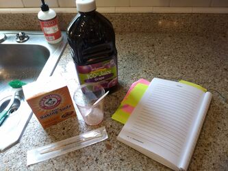 Since the ink is made with water, your message will initially appear faintly on your paper from being wet. As the mixture dries, it should disappear, though you may be able to see some baking soda after it’s dried.When you pour the grape juice over, you’ll need to read the message quickly, because some of the baking soda will be rinsed off, and the letters won’t be as clear.