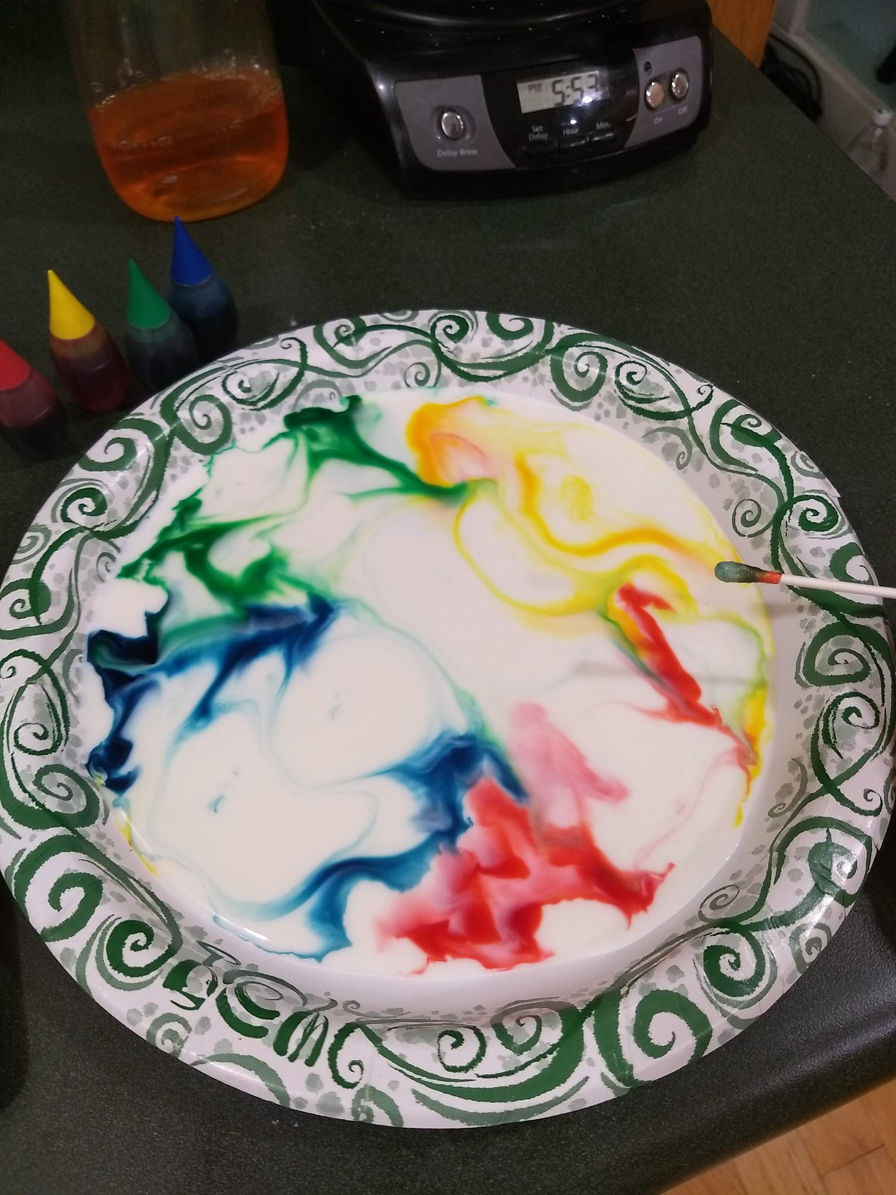 You made art. You were able to observe the normally invisible interactions between two substances by adding food coloring.