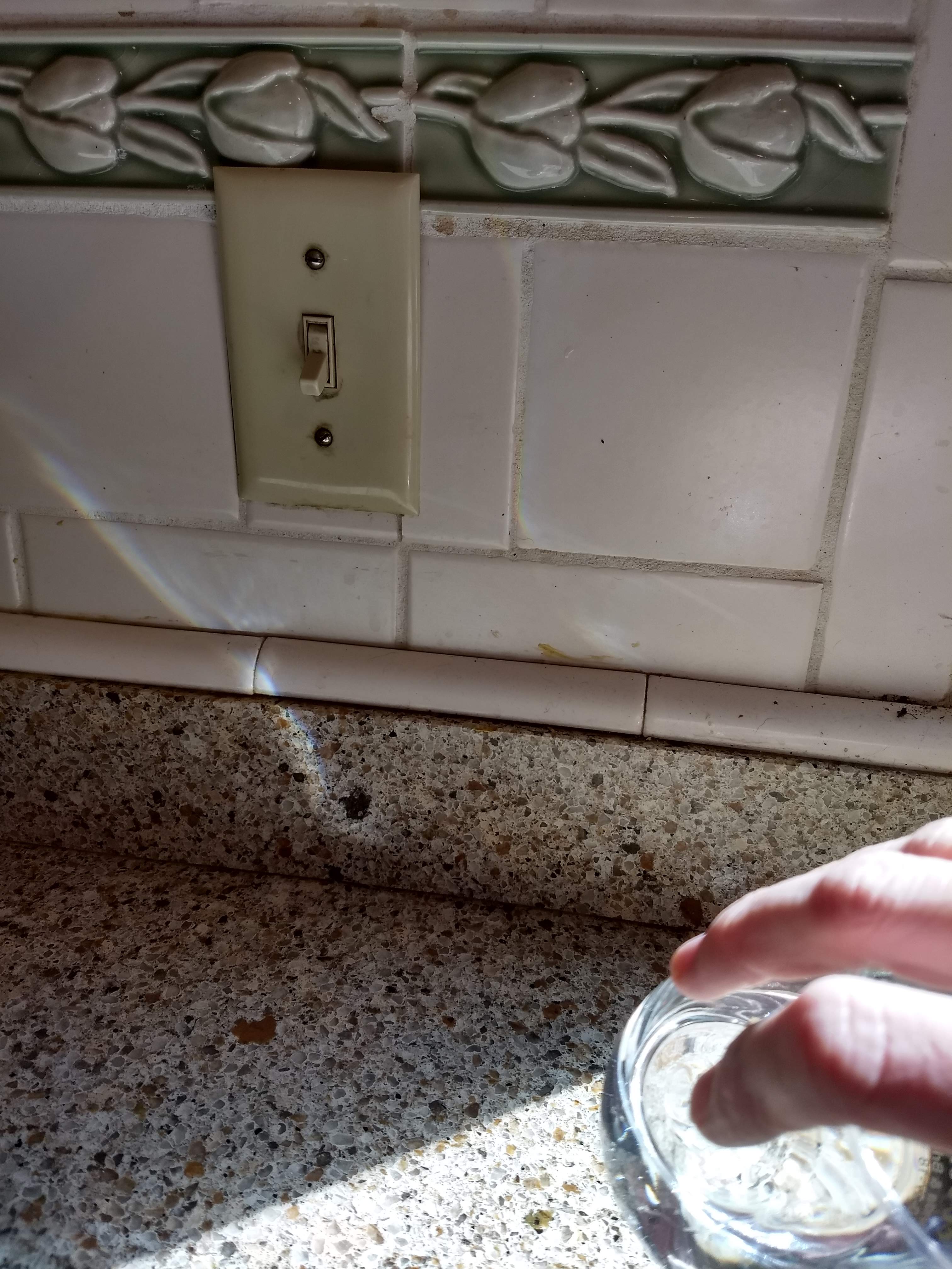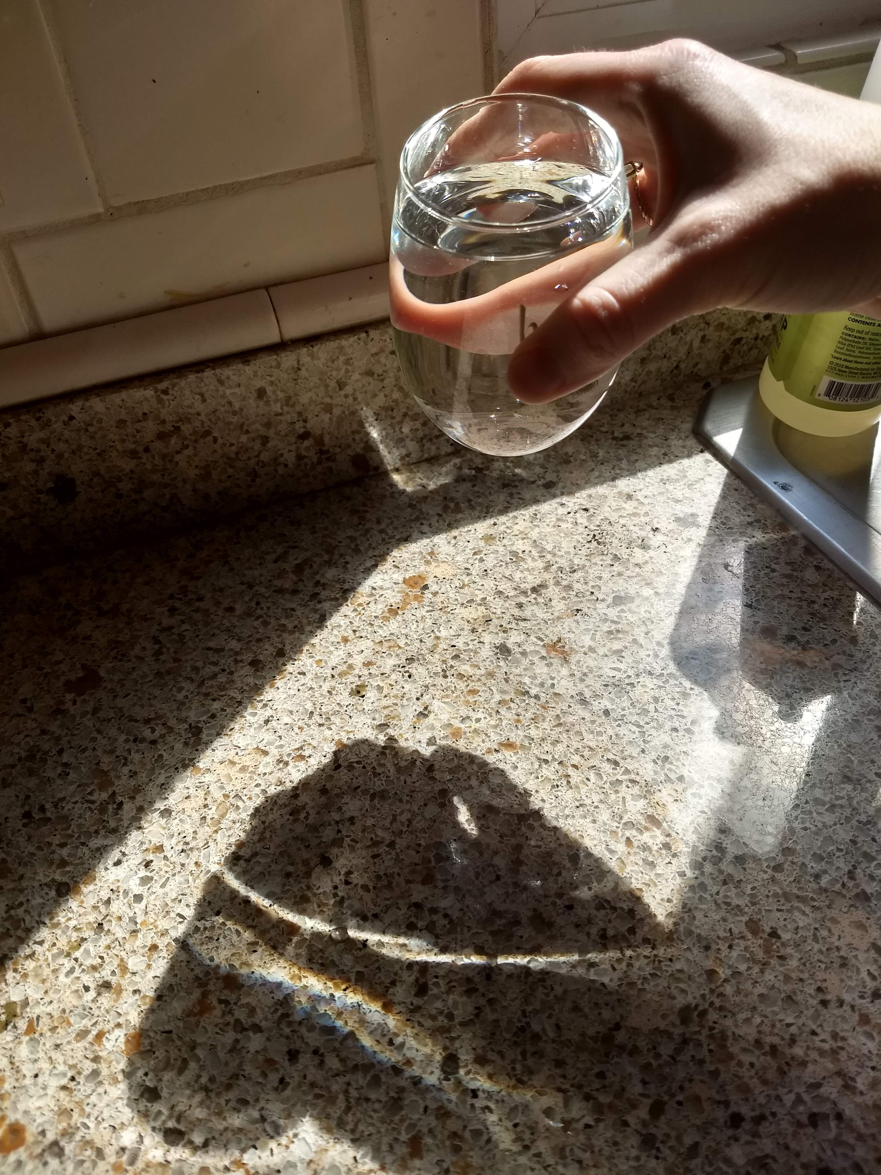 You attempted to diffract sunlight into its different wavelengths using a glass of water as a prism.