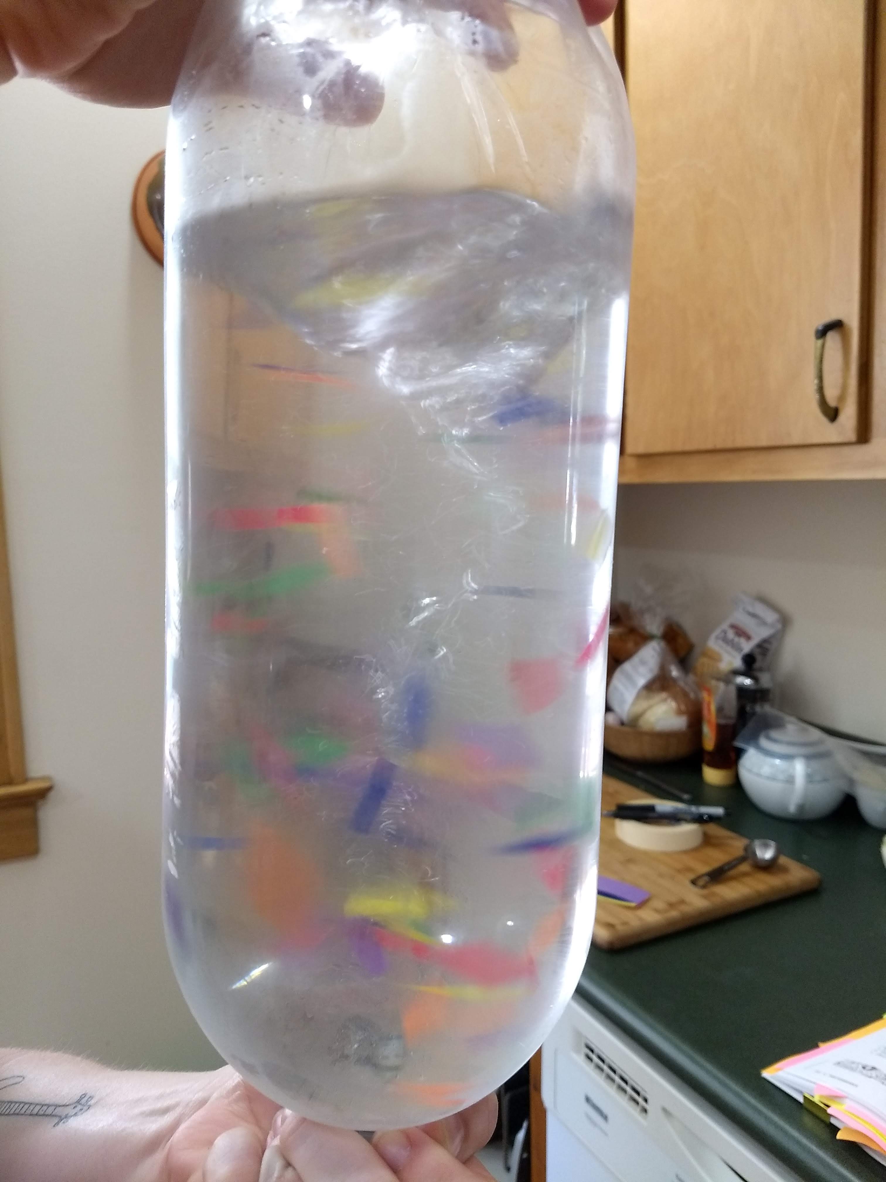 Try putting small, floating objects, like small building bricks inside the bottle