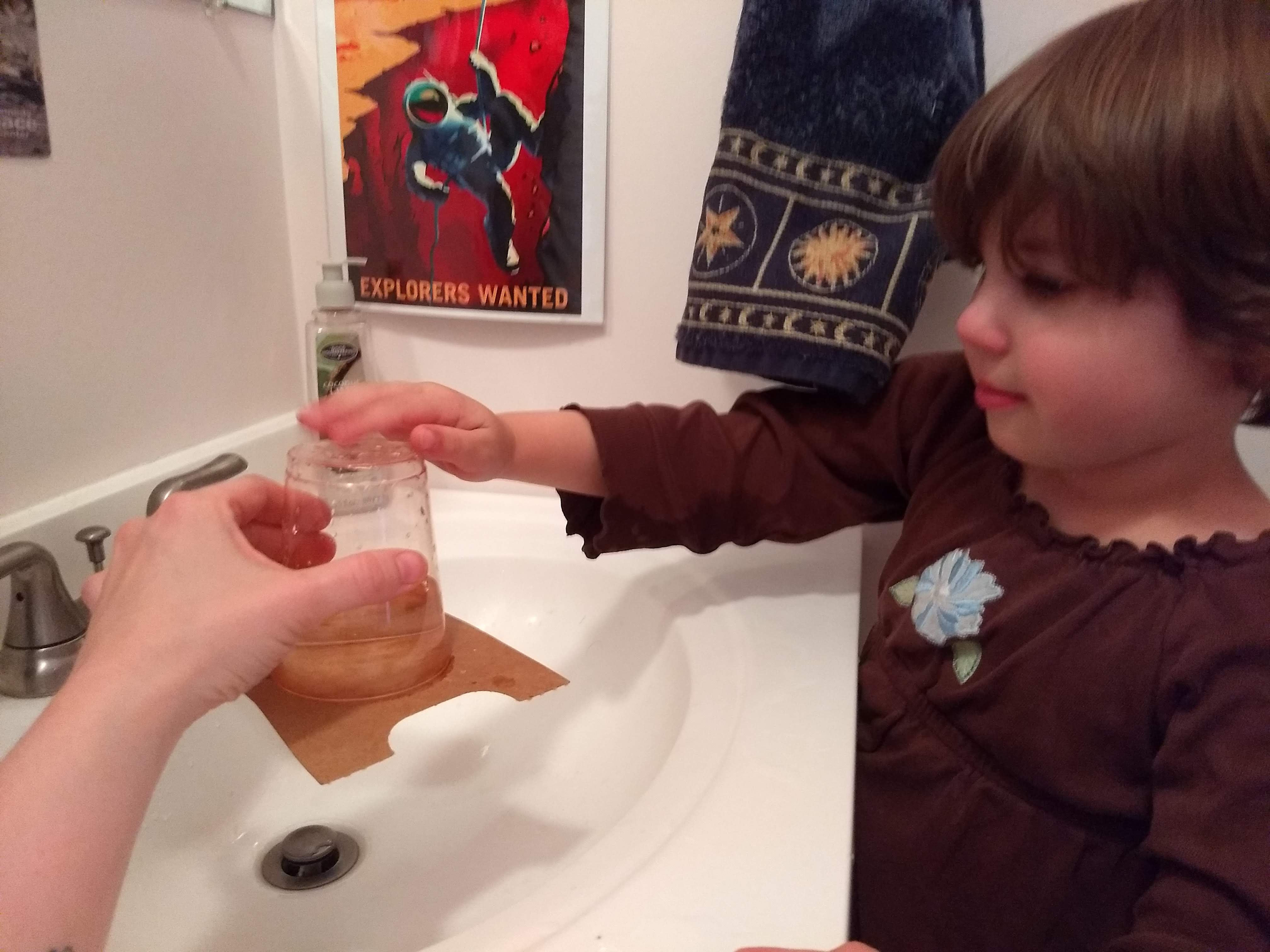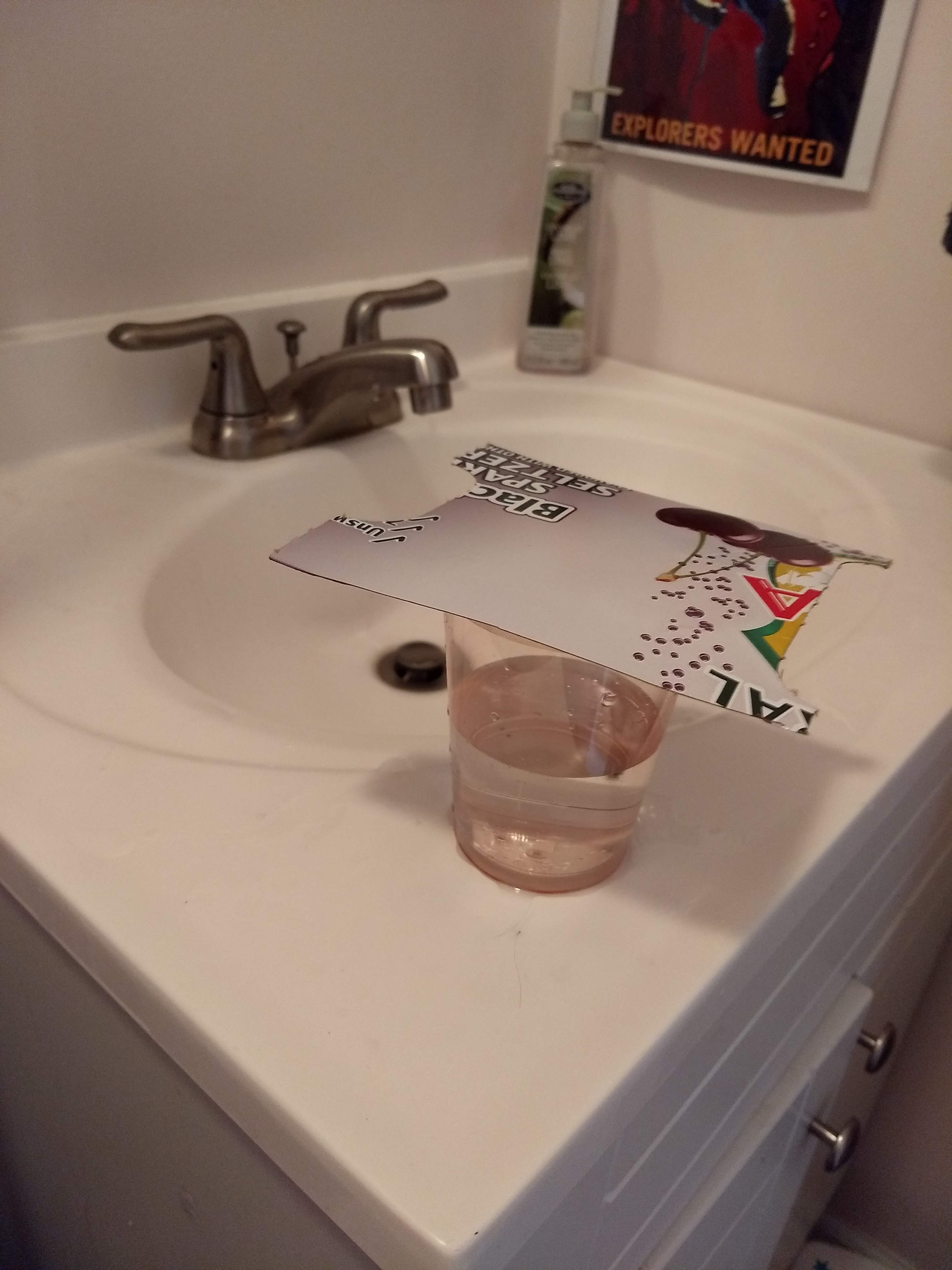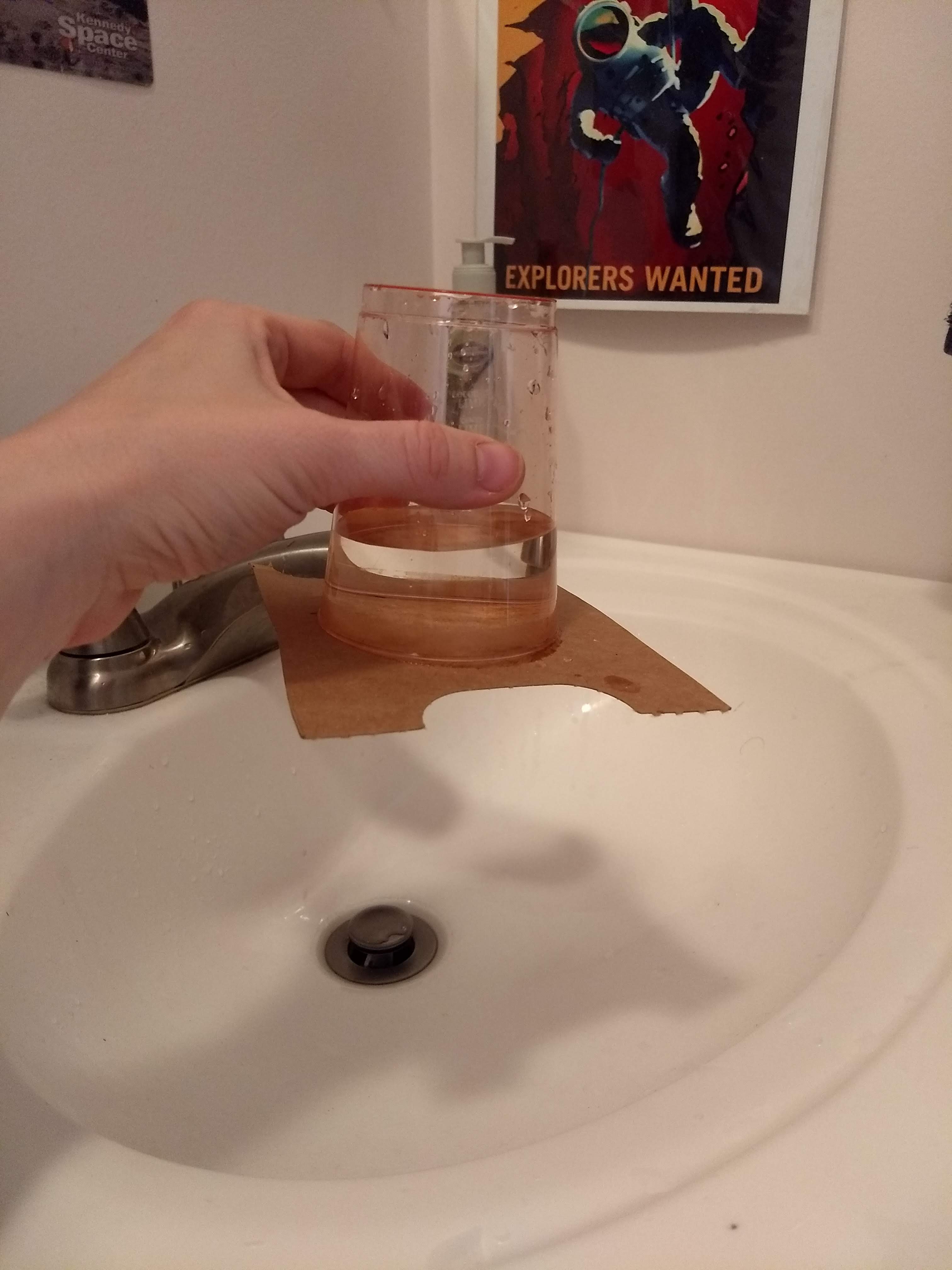 When you remove your hand from the cardboard, both the water and the cardboard should stay put.