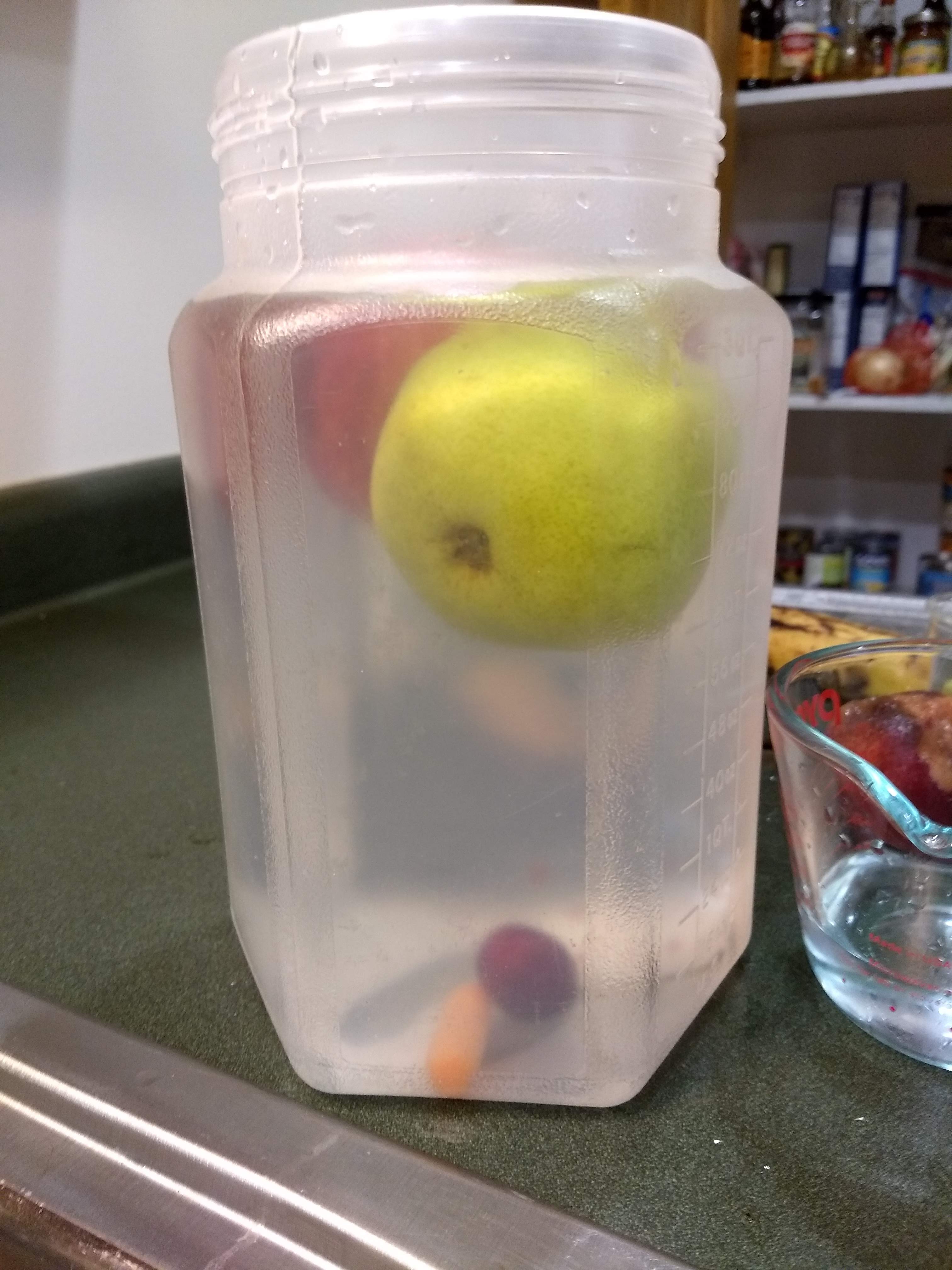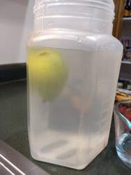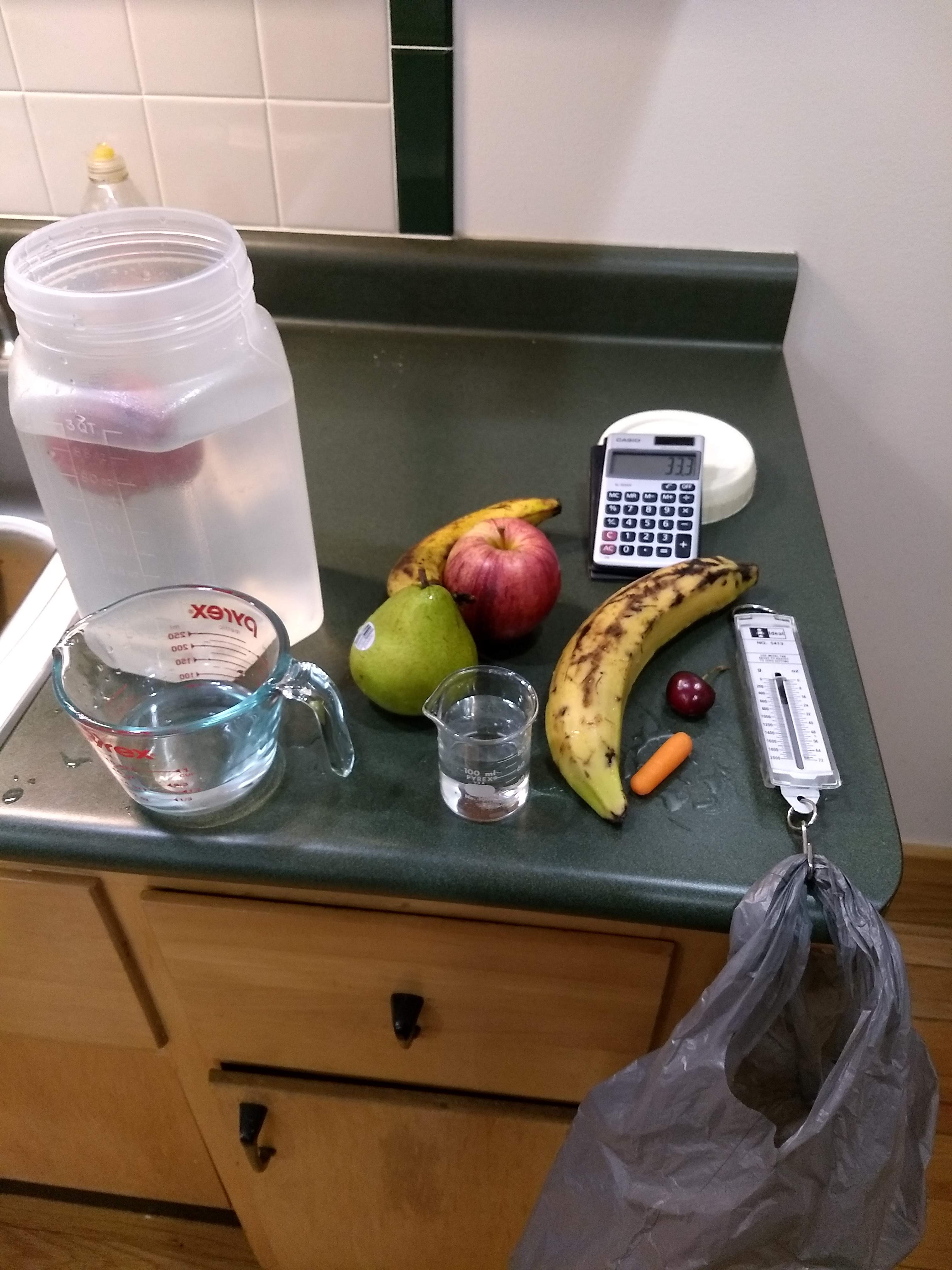 This is a tricky experiment, since you’re bound to get water everywhere. Spilling water at any point will affect the measurement.Ripeness may also be a factor, depending on what you used.