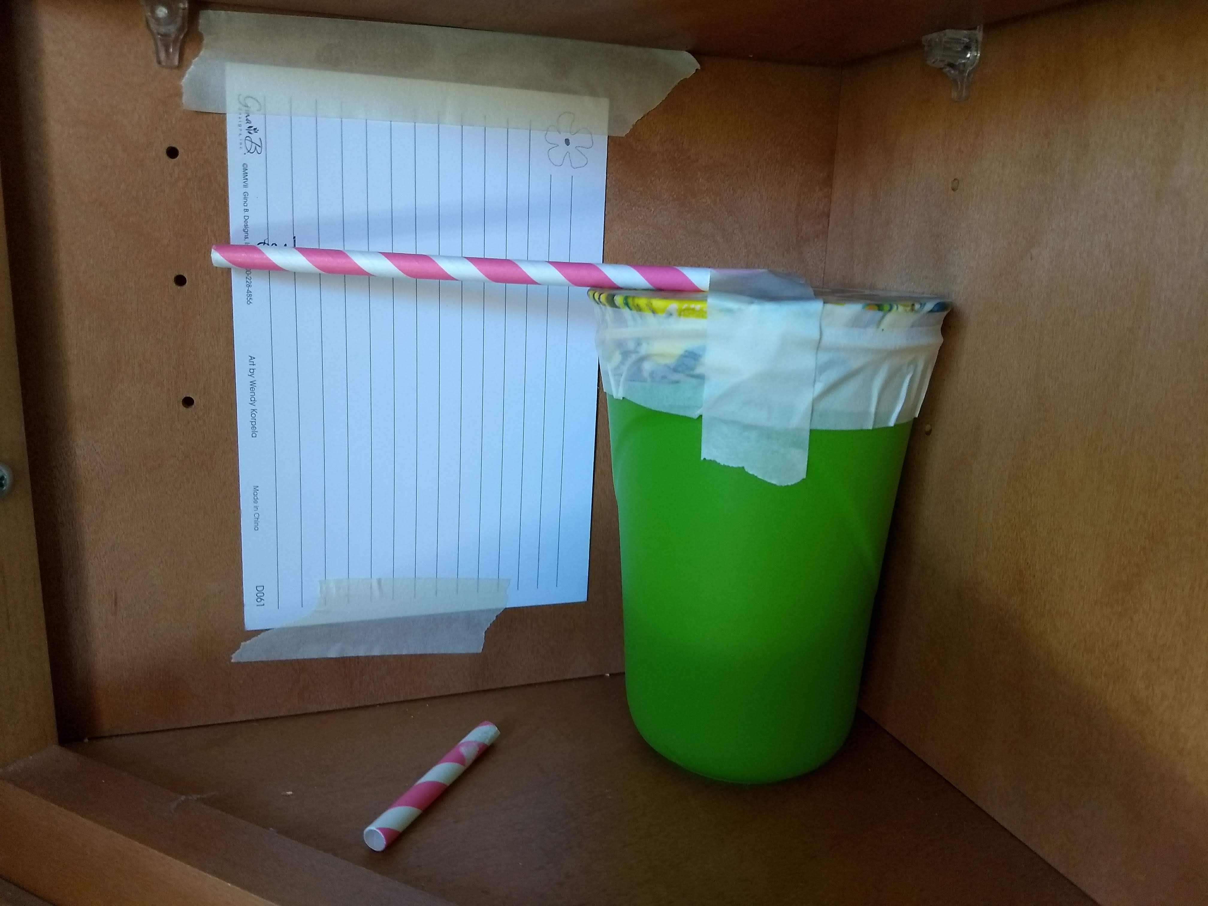 It can take some time to see results for this experiment, since it depends on the weather.When the air pressure drops, like when there’s a rain storm, the air in your cup should be higher than the air around it, inflating the balloon a bit, and causing the straw to tilt lower than your starting mark.When the air pressure rises, the air in the cup should be equal to or lower than the air around it, deflating the balloon, and causing the straw to return to either your starting mark or rise above it.