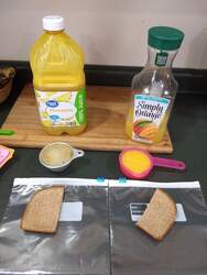 Change the type of food you put in the bag. Try using a different juice, or even a different kind of liquid altogether, like water or milk, or things like cleaning products if you have parental supervision.See what happens if you dissolve a cracker or bite of bread on your tongue for a few minutes. What does it taste like?